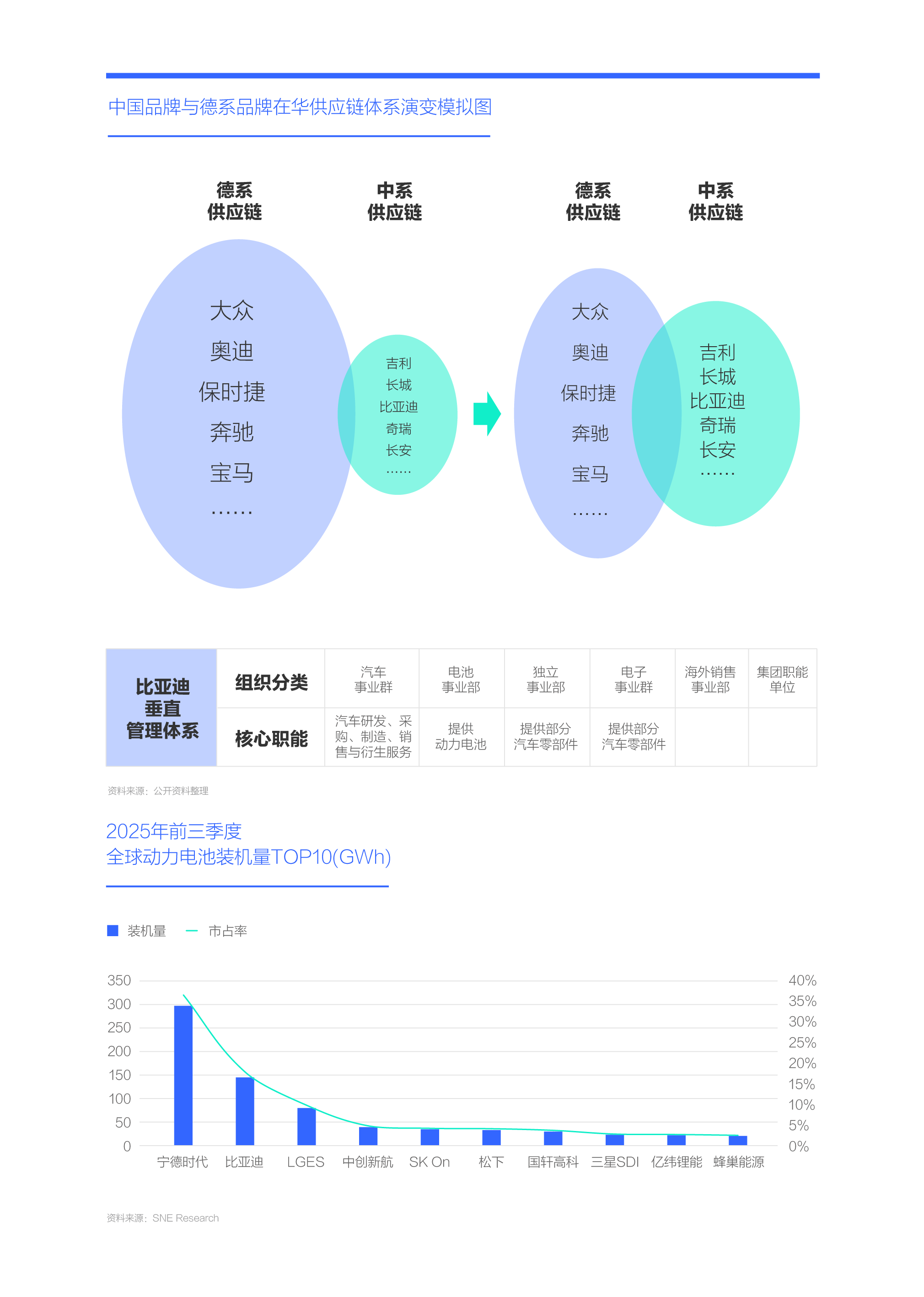 十四五,随着电池、电子元件等电气化设备的加速普及,中系供应链强势崛起,助力中国品牌获得更多定价权。在最关键的动力电池领域,中国零部件供应商已取得领先优势,2025上半年,宁德时代以近300GWh位居全球动力电池装机量榜首,比亚迪以近150GWh位居第二,中创新航、国轩高科、亿纬锂能和蜂巢能源均位列TOP10。另外,比亚迪、吉利、零跑等越来越多的中国品牌,纷纷构建起高度垂直整合的供应体系,大幅提升成本控制与市场议价能力;